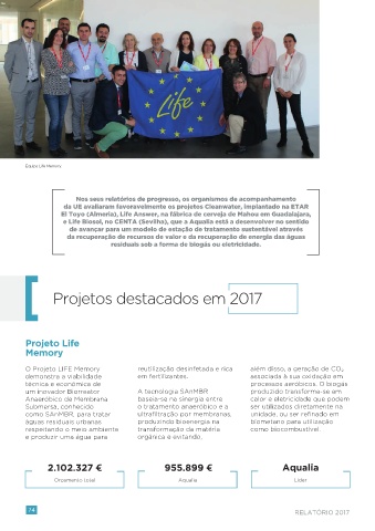 da UE avaliaram favoravelmente os projetos Cleanwater, implantado na ETAR